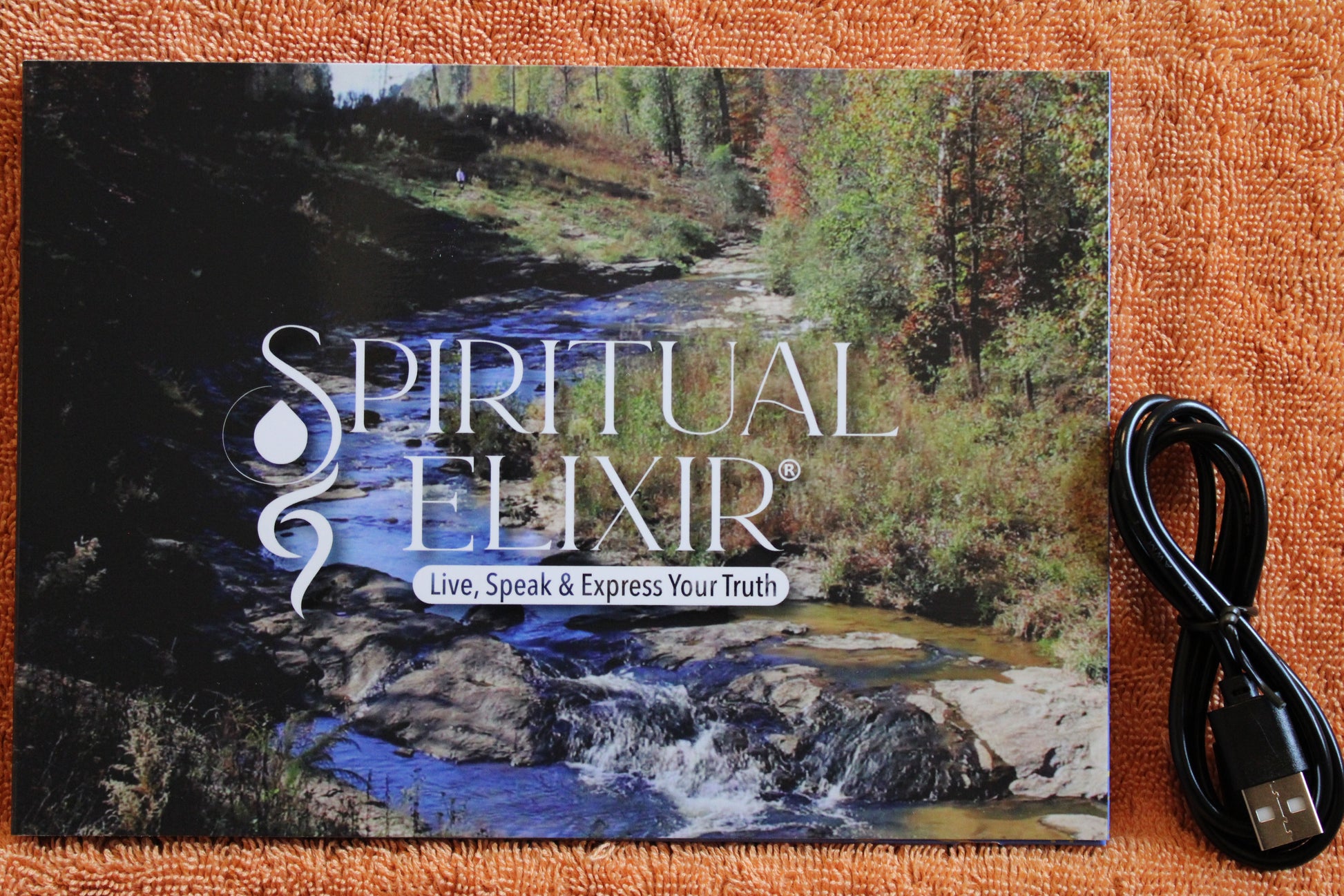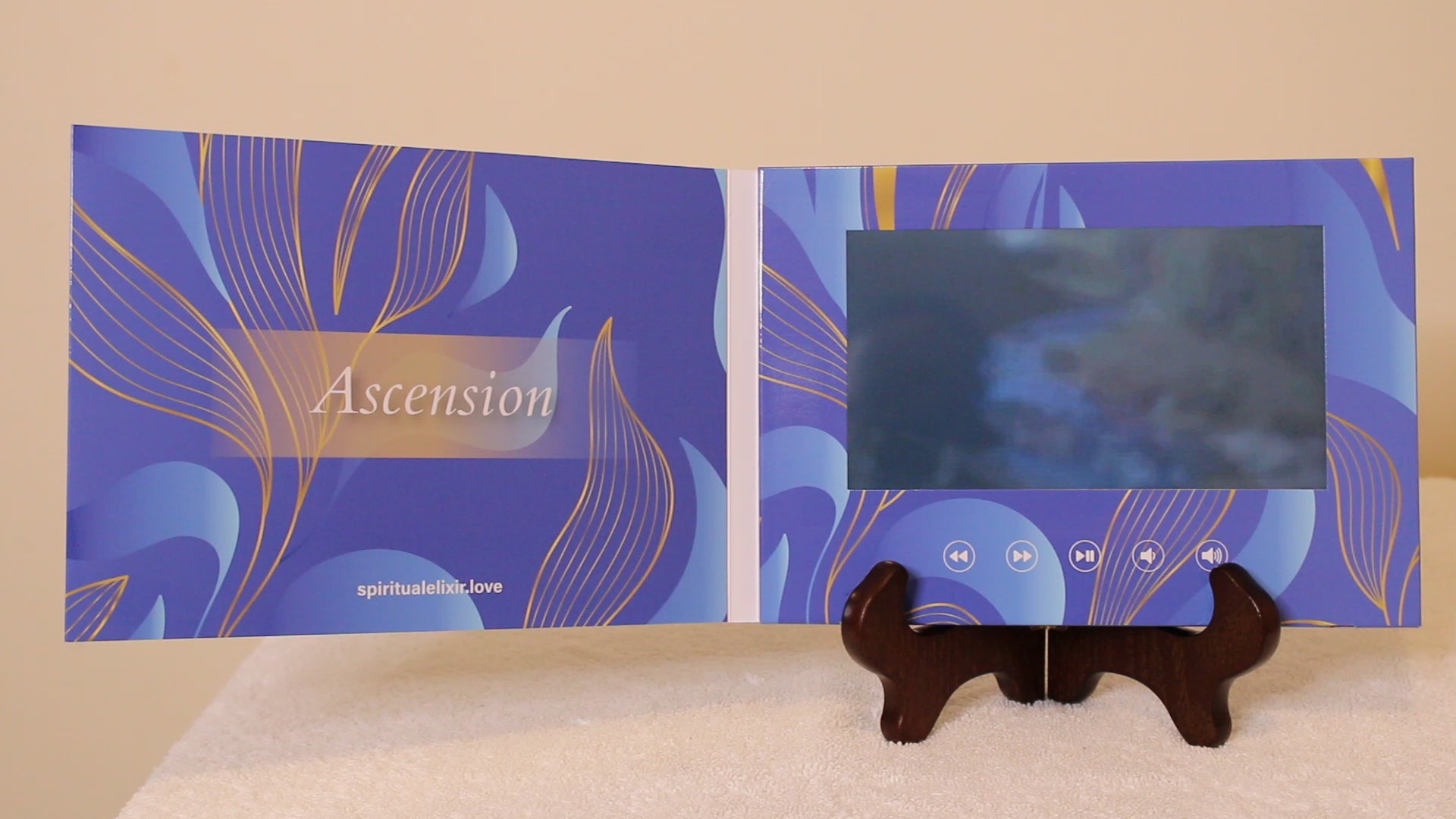 Spiritual Elixir Inspirational Video cards are 20-second inspirational, motivational digital cards that focus on living and leading a healthy lifestyle with intention. The cards are the catalyst to help you LIVE, SPEAK & EXPRESS your truth. These video cards cause self-reflection, introspection and promote spiritual wellness. Features of the video card include a rewind button, a fast-forward button, a play/pause button, a lower volume button, and a higher volume button. (You must press and hold the rewind and fast-forward buttons for a few seconds to activate the feature.)