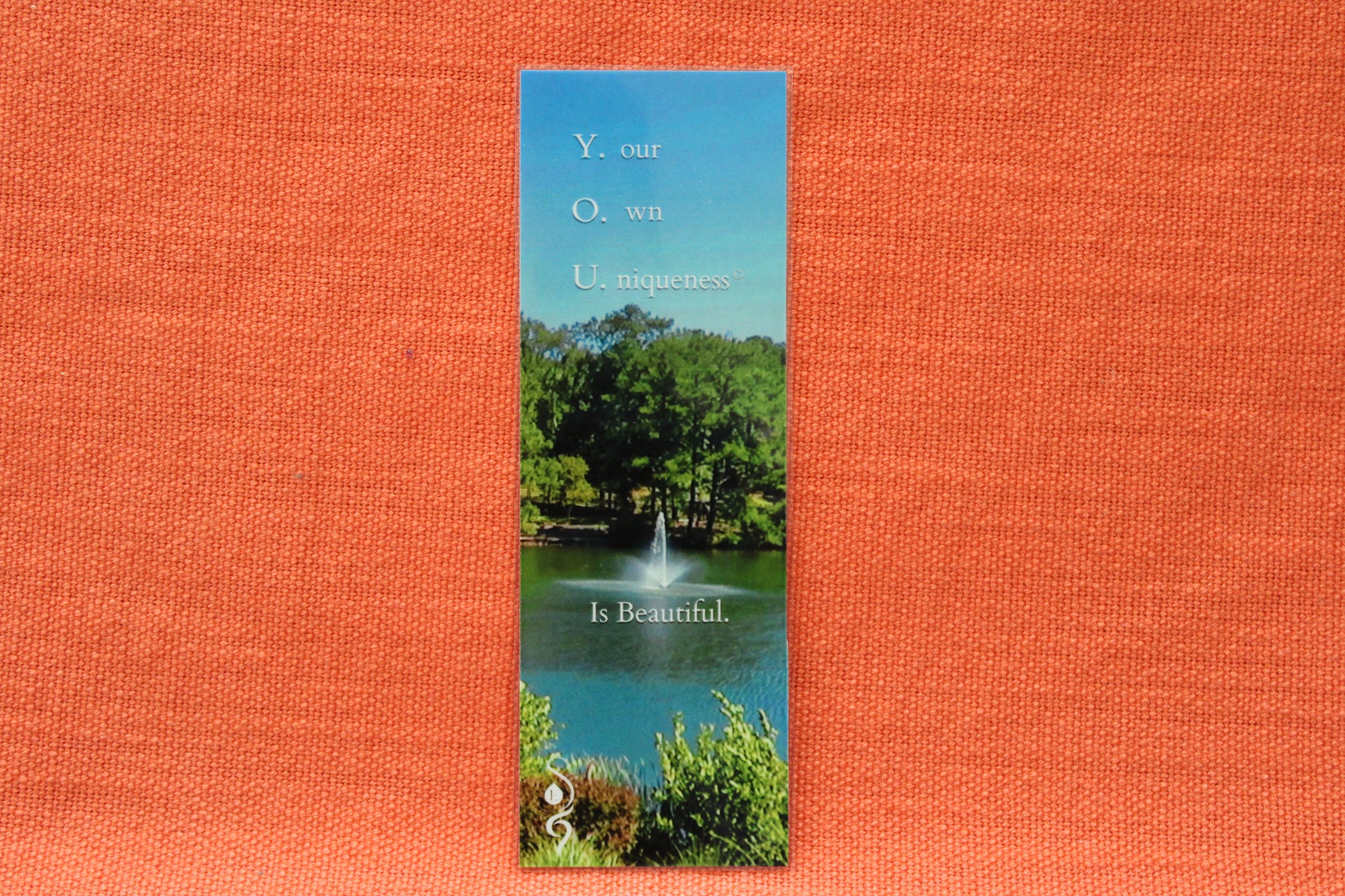 The bookmark is titled Y.O.U. It means YOUR OWN UNIQUENESS, and it is a reminder that EVERYTHING ABOUT YOU IS BEAUTIFUL!