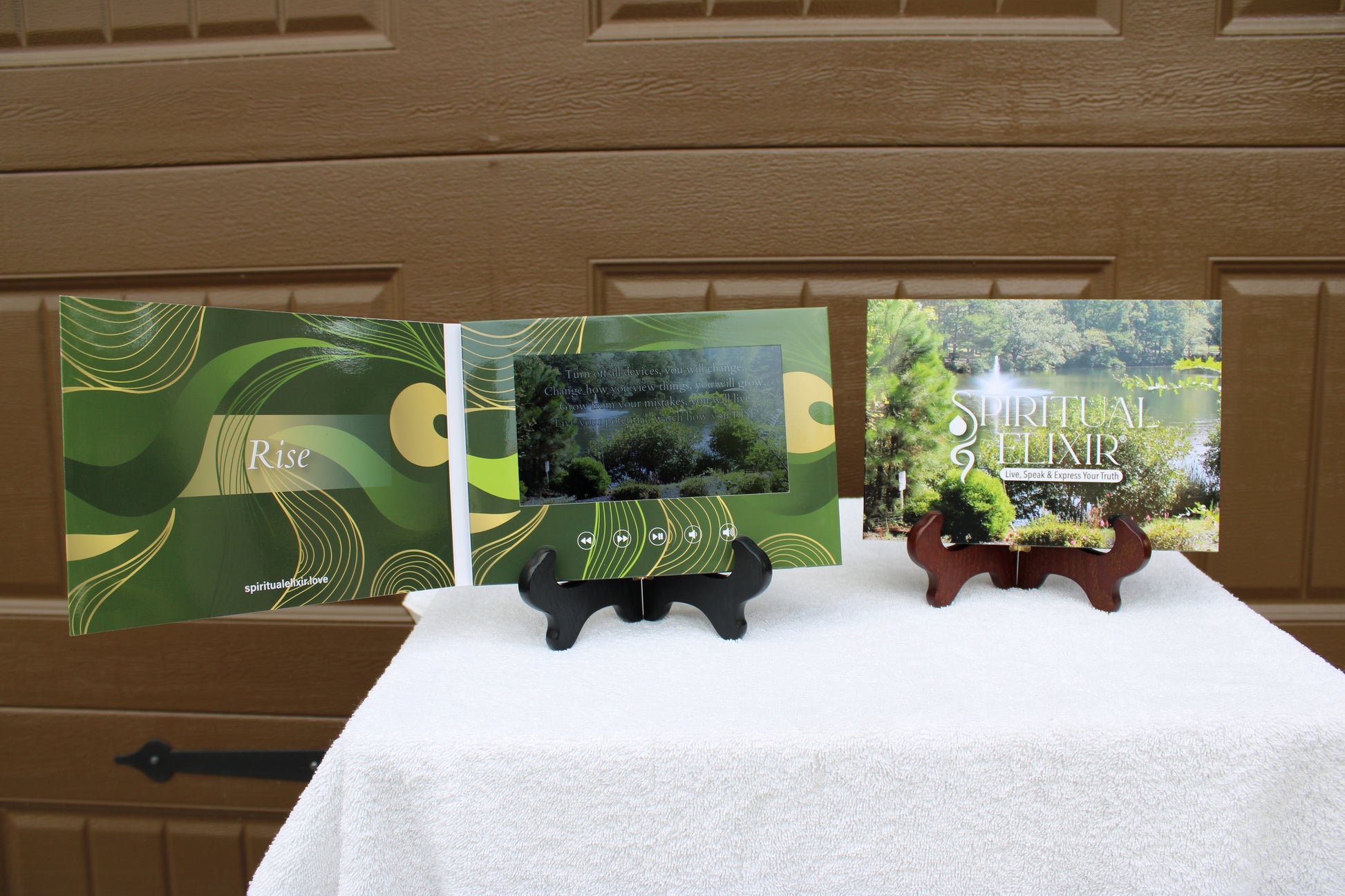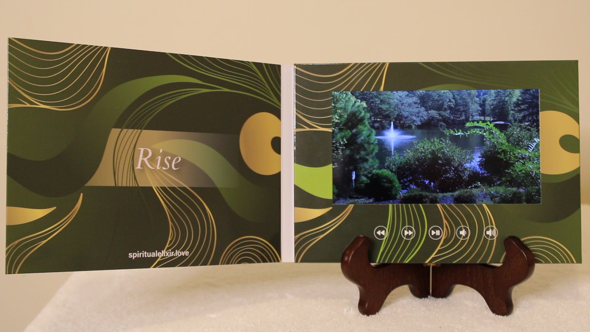 Spiritual Elixir Inspirational Video cards are 20-second inspirational, motivational digital cards that focus on living and leading a healthy lifestyle with intention. The cards are the catalyst to help you LIVE, SPEAK & EXPRESS your truth. These video cards cause self-reflection, introspection, and promote spiritual wellness. Features of the video card include a rewind button, a fast-forward button, a play/pause button, a lower volume button, and a higher volume button. (You must press and hold the rewind and fast-forward buttons for a few seconds to activate the feature.)